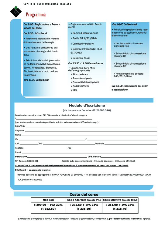 Sede: Milano – CEI, Via Saccardo 9