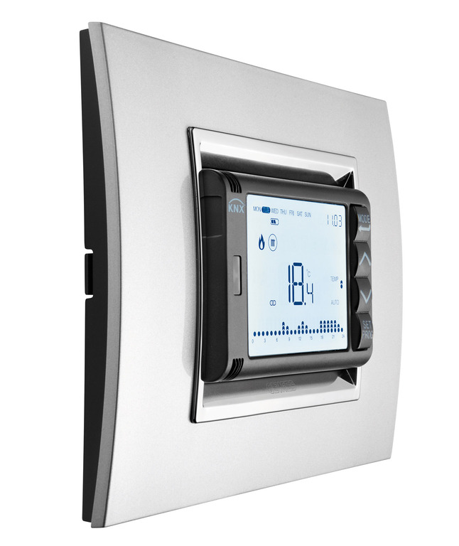 La nuova gamma, disponibile nelle due versioni KNX e KNX Easy, si compone di: Cronotermostato KNX, Termostato KNX e Sonda di temperatura KNX. Tre dispositivi che, combinati opportunamente, sono in grado di soddisfare tutte le esigenze applicative. I prodotti sono adatti per gestire impianti di termoregolazione a singolo o a doppio stadio (impianti con elevata inerzia termica), di tipo tradizionale con elementi radianti, a pavimento, fan coil, etc.