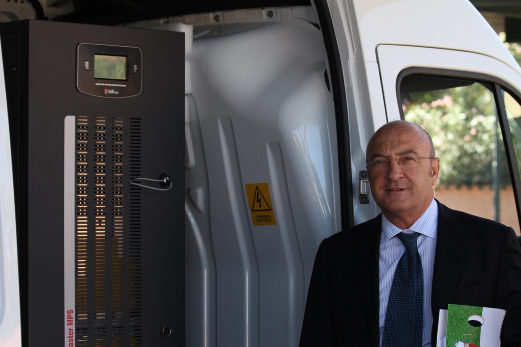 In questo contesto la tecnologia Riello UPS ha permesso di creare un’unità mobile ad altissima efficienza, installando su un Nissan NV400 un UPS serie Master MPS da 30 kVA capace di gestire un sistema di accumulo da 100KW costituito da 130 batterie Litio-ferro-tetrafosfato, predisposto per essere alimentato da fonti rinnovabili e utile a ricaricare un veicolo elettrico dal 30% all’80% in appena 15’, restando sempre nell’ambito del peso di un furgone da 35 quintali. Il Master MPS fornito da Riello UPS, opportunamente customizzato, consente di dialogare con il BMS proprietario delle batterie per adeguarsi alle specifiche esigenze richieste dagli accumulatori. Tutto il sistema è stato sviluppato con l’obiettivo di garantire un’elevata accessibilità e mobilità, consentendo al tempo stesso alti standard di resistenza alle sollecitazioni introdotte dal moto del furgone.